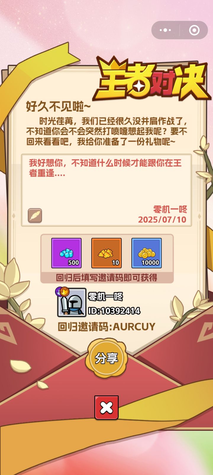 #王者对决小程序兑换码 #王者对决