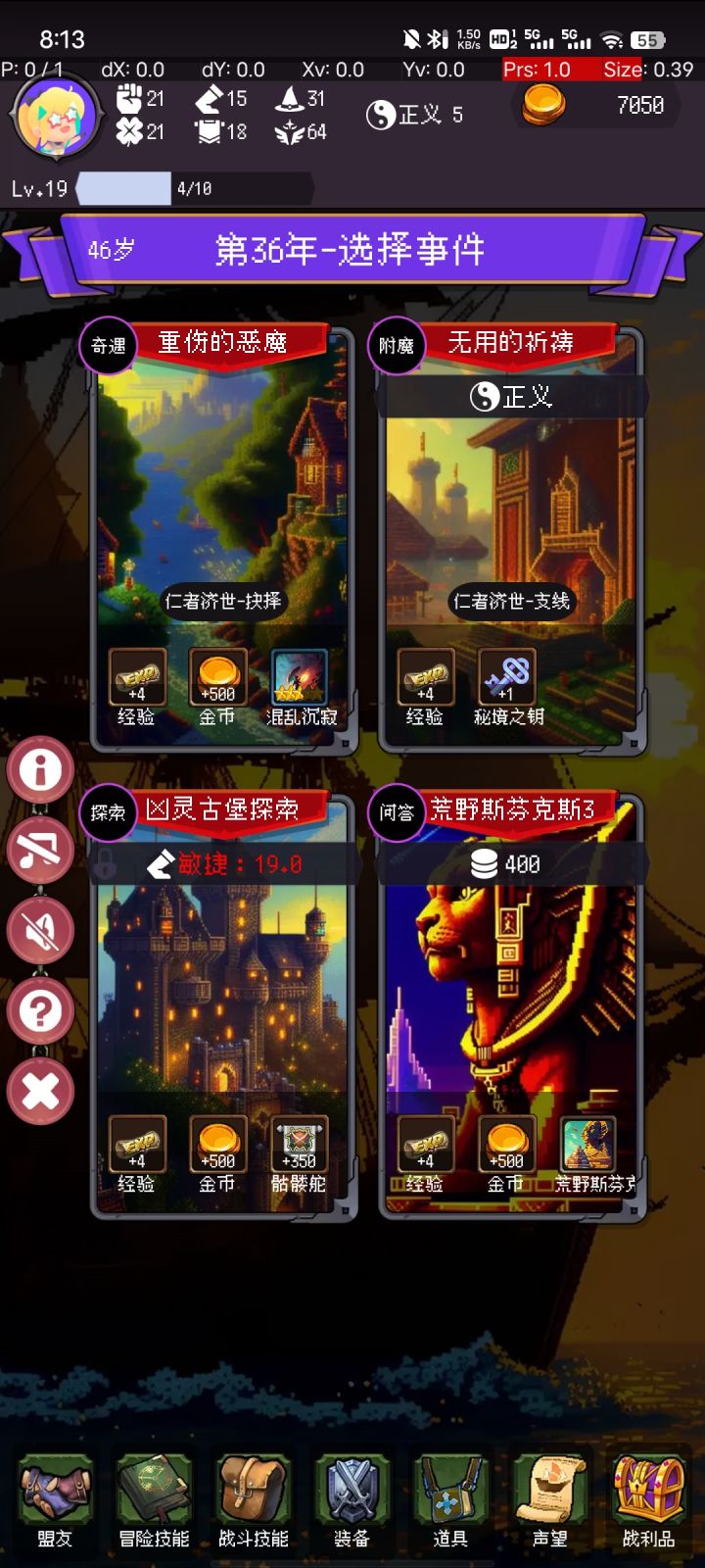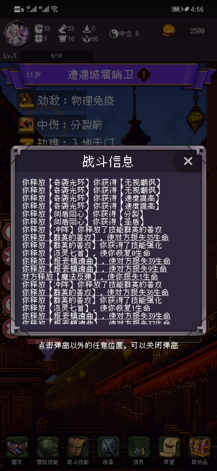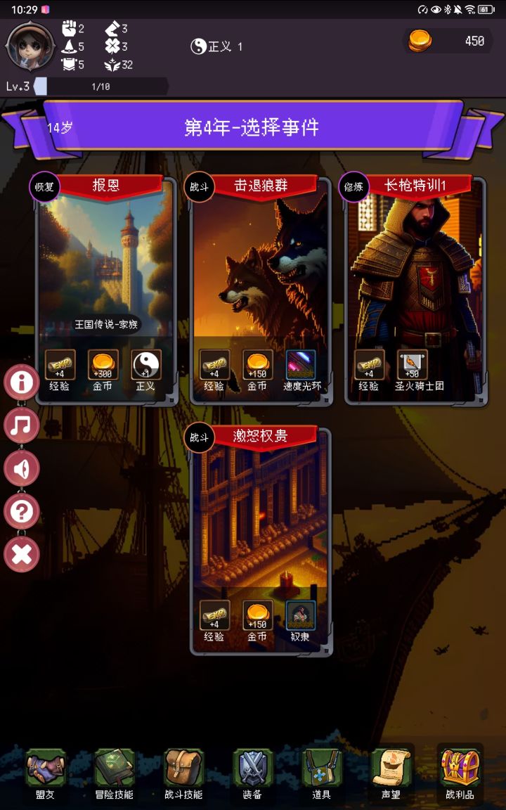 必过人物高配版4星城墙加炼金 低配版黑龙炼金(黑龙需要挑非物理攻击boss打)技能搭配剑盾 5星飓风 4星征服(最好5星,用黑龙打就1星就行)骑术训练 以上技能必带,星数如果差一点可以靠进游戏找技能升级事件但是5星飓风是必须有没有的话后期可能会因为扛不住伤害导致无法触发飓风,实测飓风分裂可以秒3个身世选择最好有70随心所欲其他根据不同地图选择先说城墙的打法进图50岁以前用赤兔加骑术去养