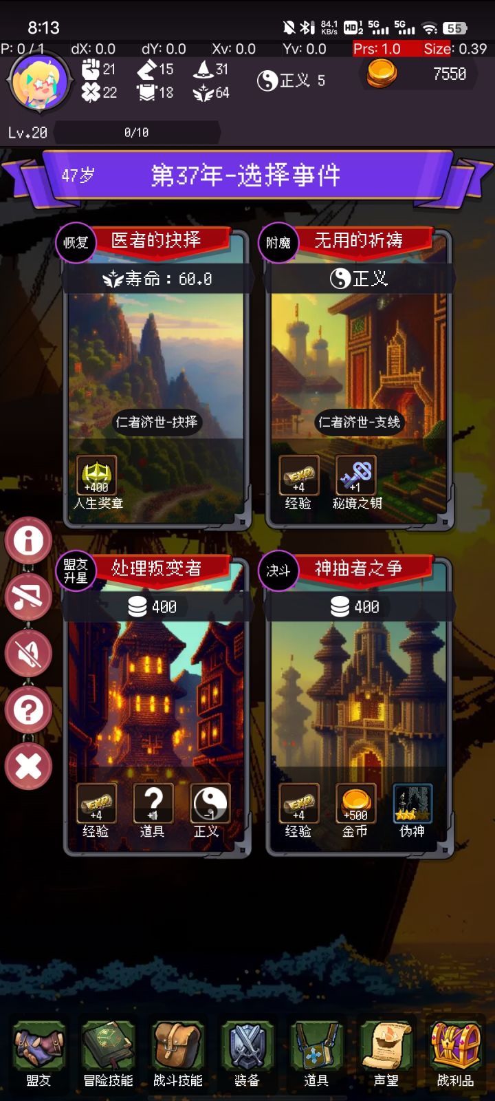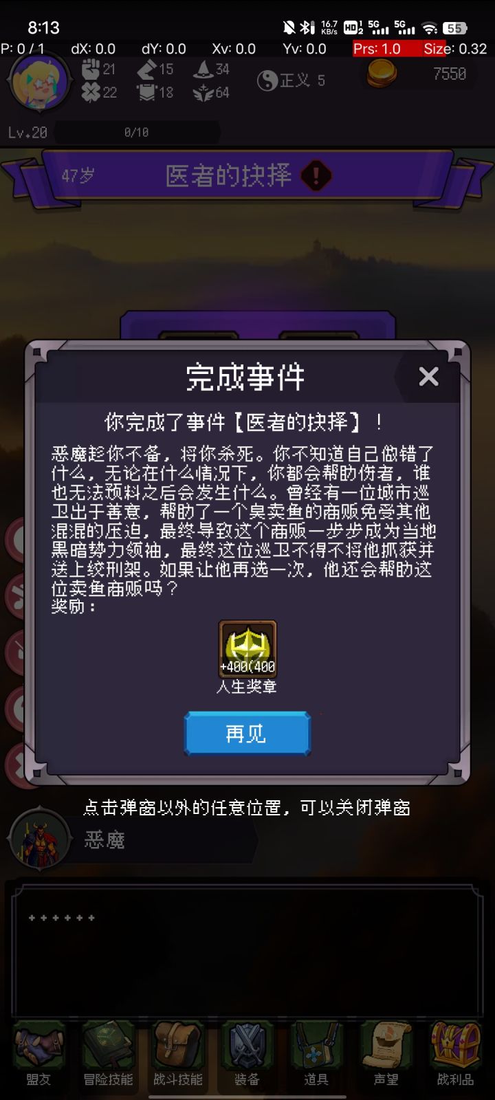 我们可以通过医者故事集来达到刷勋章的效果,但是是有两个前置条件的1·拥有“仁者济世”故事包2·寿命上限要到60岁通过医者的主线任务,一直往上刷,刷到40岁左右就会碰到这个任务的前置任务“重伤的恶魔”选择救治恶魔之后,再往后面走一段剧情就能看到“医者的抉择”选择这个剧情之后,角色就会被恶魔偷袭杀死,同时也会给你额外的400勋章(加上40岁左右时会给你的100勋章,一共500勋章)大概刷个六次左