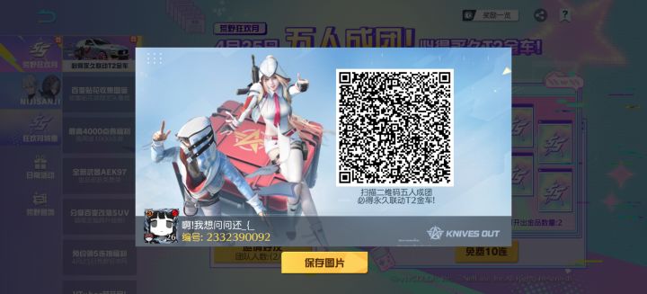 荒野行动新春庆典开启!输入【aZbCdL+nnQxsdF0W】集结好友,邀请好友,免费必得新年限定永久金车【便携车:马上来财】!