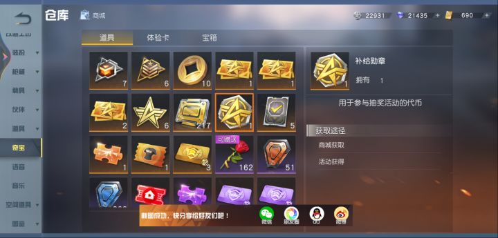这个补给勋章怎么用啊,我才玩2个月,第一次看到这个,主页也没有使用地方啊。