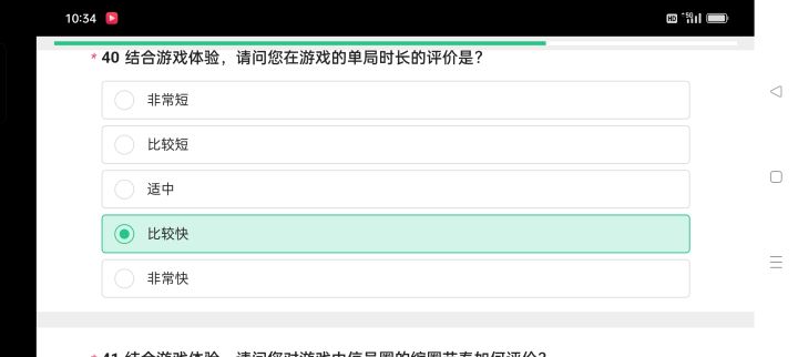 单局时长评价,时间比较短,时间比较快,不是一个意思的近义词嘛,是我语文不好还是脑子没转过来,问卷调查给我填懵了,不是应该时长短和时长长相对嘛