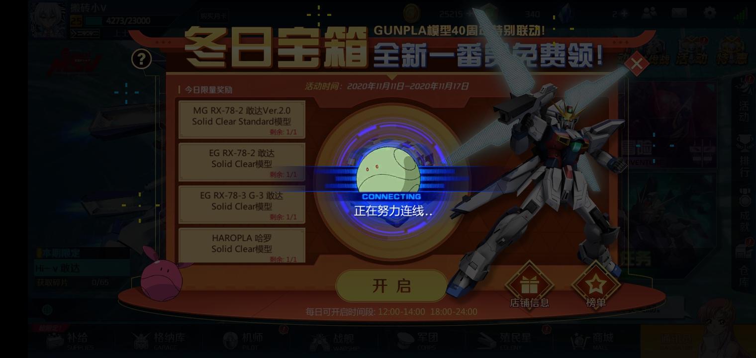 不给领,何必亮着,我看可以领了,就点击开启了,然后他就说是正在连线。两次了,昨天晚上也是。那我就切一个网呢拿流量。结果跟我来句失败。