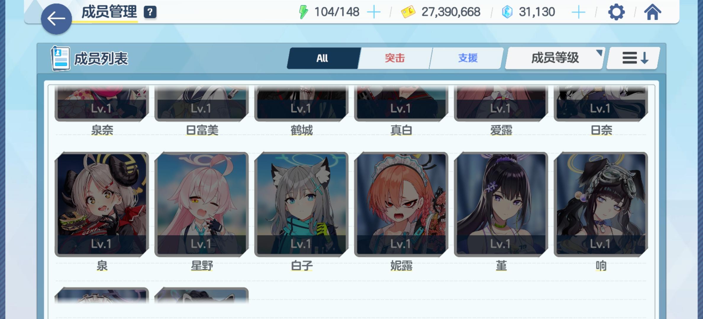 首先说一下,没玩过国际服啥的,纯新手,说的不对也请指正。目前进度7-1,买了点体力,现在也就24级。我是第一天玩的时候,只看了第一个十连选啥好的攻略。都说啥伊织,响,168。我就选了一个带响的,加妮露两彩。(ps:看论坛欧皇是真的多。)后来又花了点石头抽了一个伊织,一个泉,一个忘记叫啥了。三个三星。前面没啥难度,让我开始感觉到难度的是从四图开始的,挂机自动已经不能三星过了,然后开始的手动