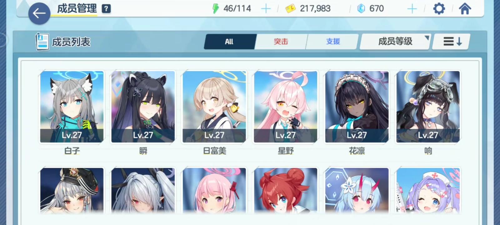 已有角色如下,白子是可以五星目前没钱突破#游戏讨论#蔚蓝档案