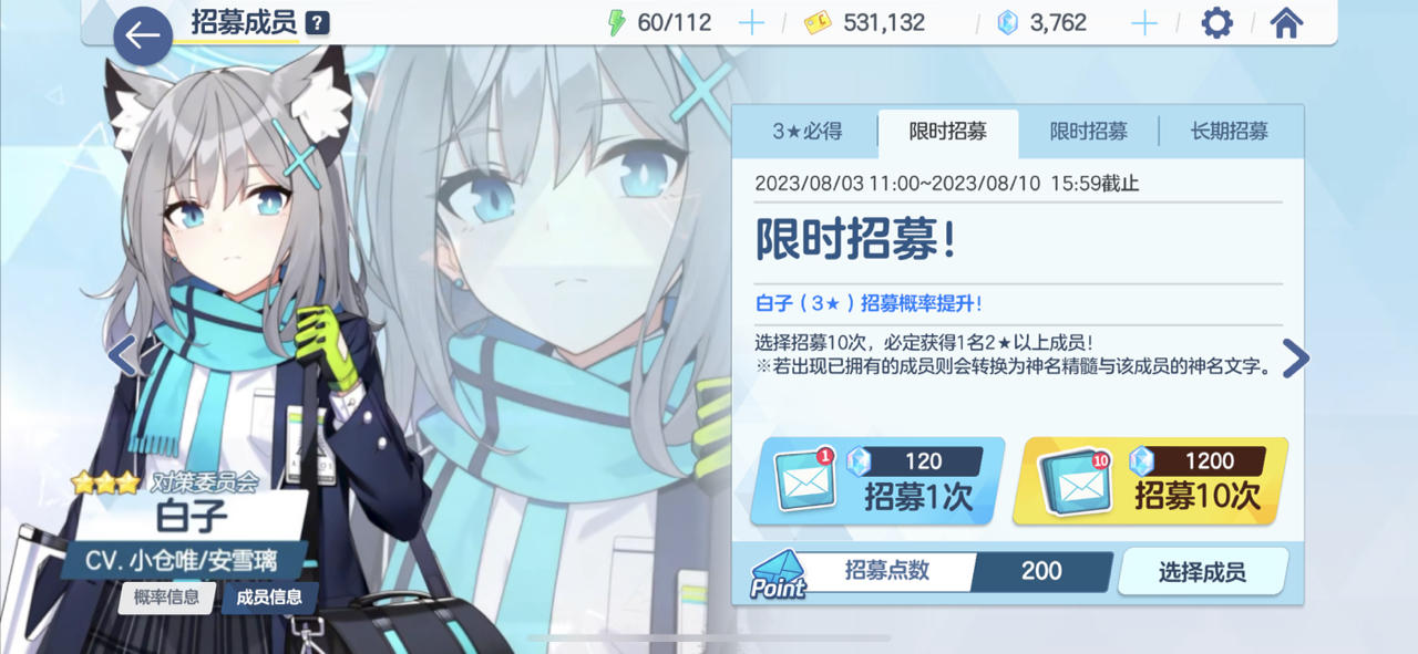 抽到白子以后,这个200招募点数是换白子还是星野呀?我没有星野