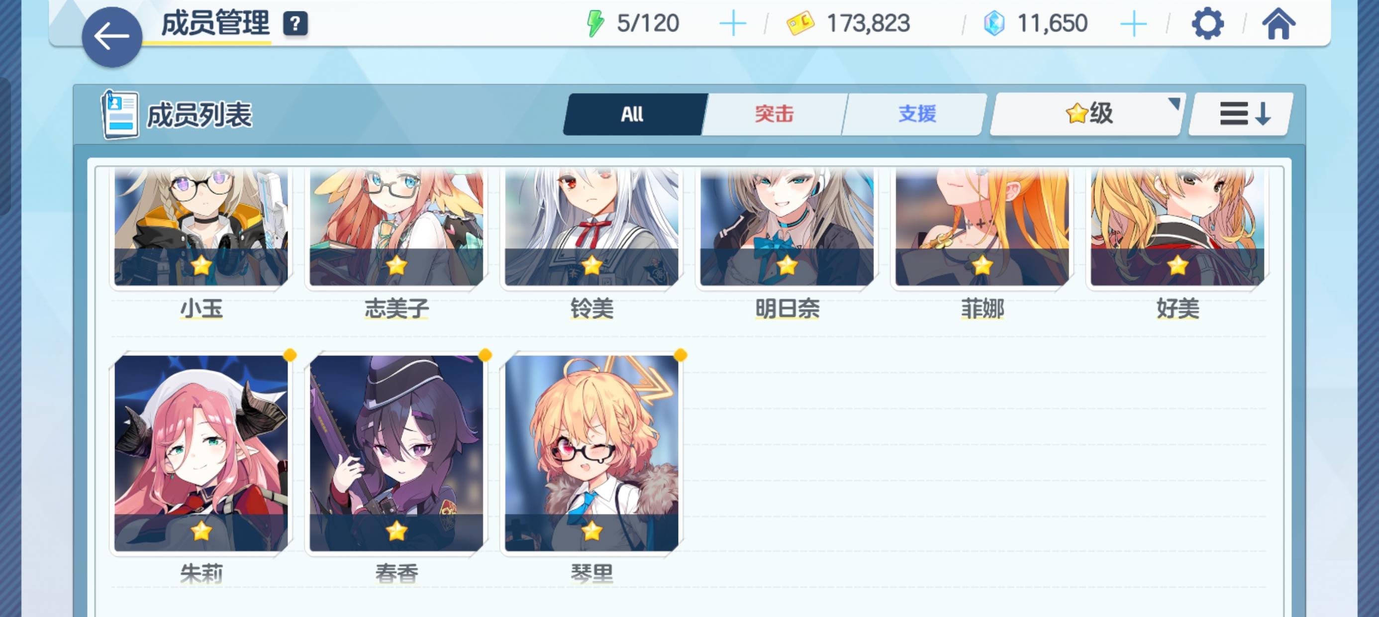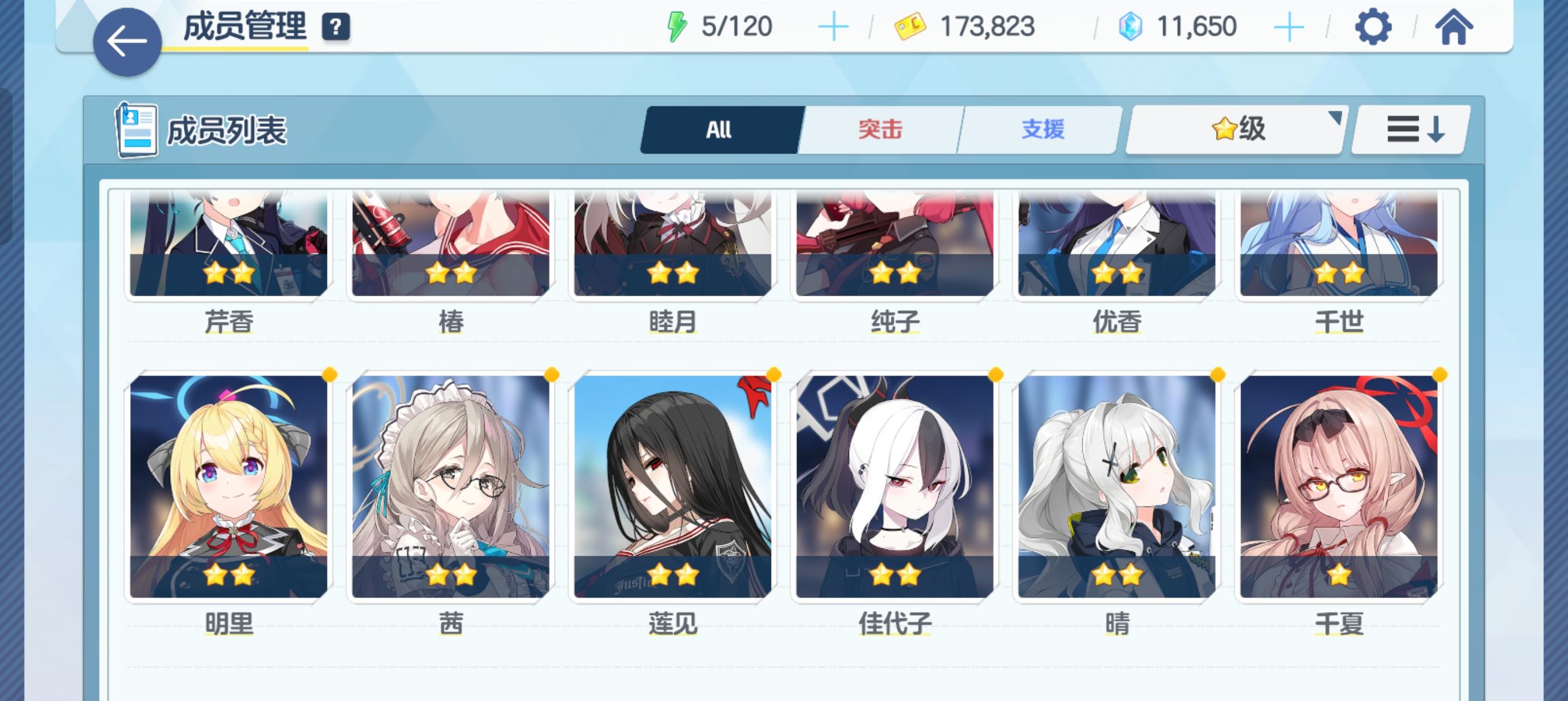 之前就把卷抽了,没动石头,发现打到后面没有两队好麻烦,前排坦除了送的优香就只有一个一星,思来想去还是决定下星野池抽个椿,运气还不错,补了2400石头,出了4个new两星,包括椿,意外还有一个星野,果断收手。主线感觉一队太难打,就咸鱼了没往后刷,优先打打升t3材料。想问问大佬们,信用点感觉奇缺,每天商店买装备强化珠和最后一排材料就要花20w,再升升级升升装备,根本没剩多少,现在想拉第二队感觉肯定是