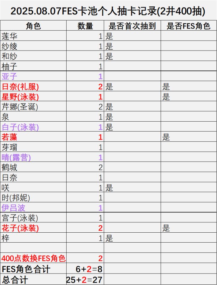 抽卡记录,2井25彩(其中8FES)