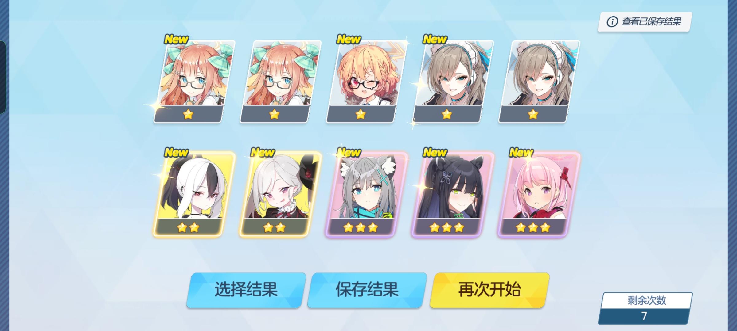 送的选择十连抽,一下就出了四个黄两个彩!后面平均2次十连发一个彩!概率太吓人了啊喂#蔚蓝档案开服打卡#游戏安利