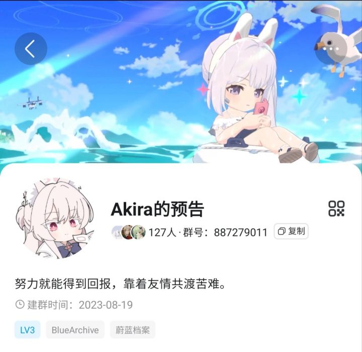 群内有国服Ba开服佬,日常答疑解惑,平常也会聊其它游戏话题(音游、MCの生电和建筑)#蔚蓝档案 )
