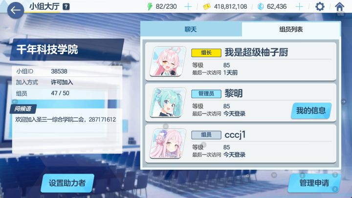 小组ID:38538群号:287171612目前群里有两个小组,一组满编了,二组还有很多空位。不管是佛系养老进来聊天潜水,还是来卷分借人都可以哦(两个小组,基本要借的人物都能拿到,群里发信息就行,对策号也是优先群里好友的)小组目前为止需要借人的角色都有,没有的也可以找一会加好友,多个人多条路.jpg