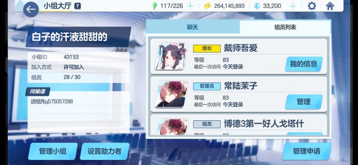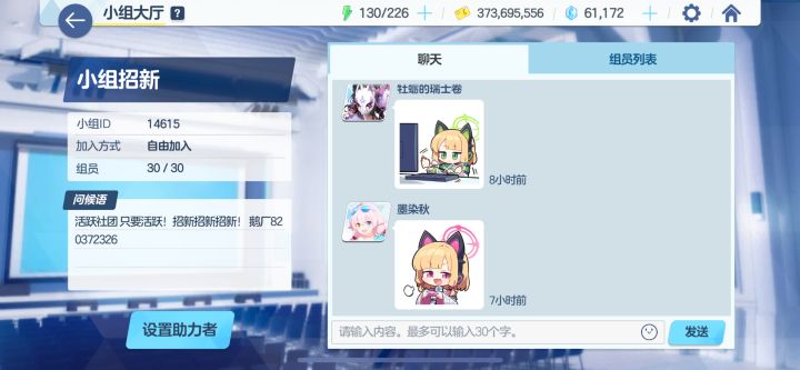 组里很多总力战大佬的喵,周四更新小组扩招,不要求助战只要每天活跃就行了喵。小组群也有功能机器人,克加可不加喵。