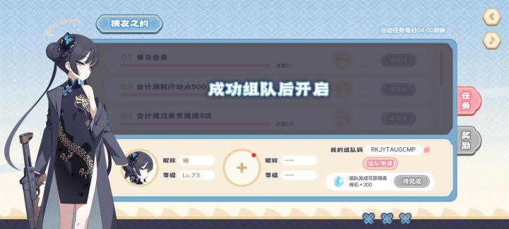KGMYUVFPKEQ,找个尽量全勤组队,能做完任务就行