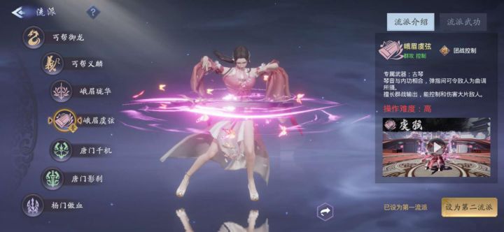 峨眉在《剑侠情缘2剑歌行》游戏中,是专属女角色的门派,也是治疗辅助特别出色的一个门派。但是不要以为峨眉门派不擅长攻击,峨眉虞弦流派以古琴为武器,擅长弹奏各种曲目,对敌人造成范围伤害,是目前所有流派中,群攻能力最强的流派,下面就一起来了解下峨眉虞弦的养成攻略吧。 峨眉虞弦定位:峨眉虞弦在游戏中的定位是群攻群控职业,擅长群战输出,群战控制。流派技能需要消耗真气,部分技能释放需要持续读条,所