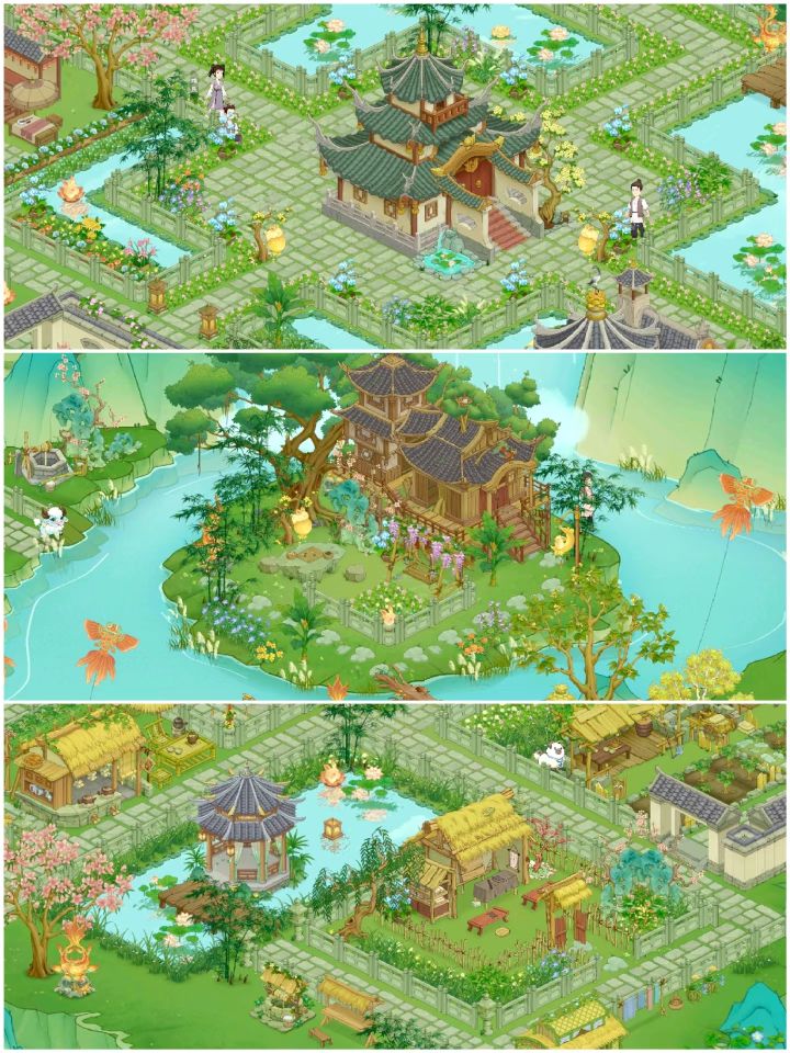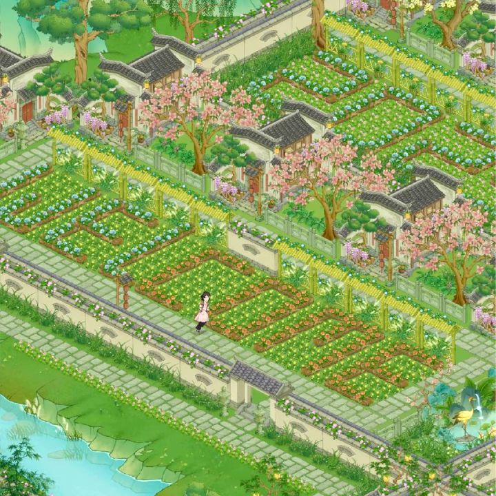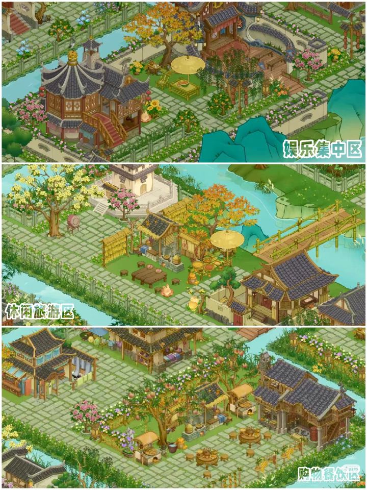 出了新皮肤和装饰以后,终于有动力自己设计(其实是在拜访了一圈玩家后发现一个设计布局图的都没有,包括前三大佬……)布局图了!这才是我在模拟经营游戏最爱干的事啊哈哈哈比不了大佬的设计,但我已经很满意啦之前桃谷装饰和皮肤要么跟逃难一样,要么好看的装饰皮肤与其他不搭(没错,说的就是你,青石墙和木栅栏)。还有树长的也是一言难尽,松树柳树桃树丑的我只想通通跟杂草一样扔到夜市……美