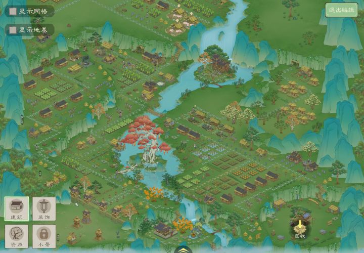 前期先利用有限资源大概摆一下,等后面装饰物多了再慢慢优化,空位置留给升级后的建筑