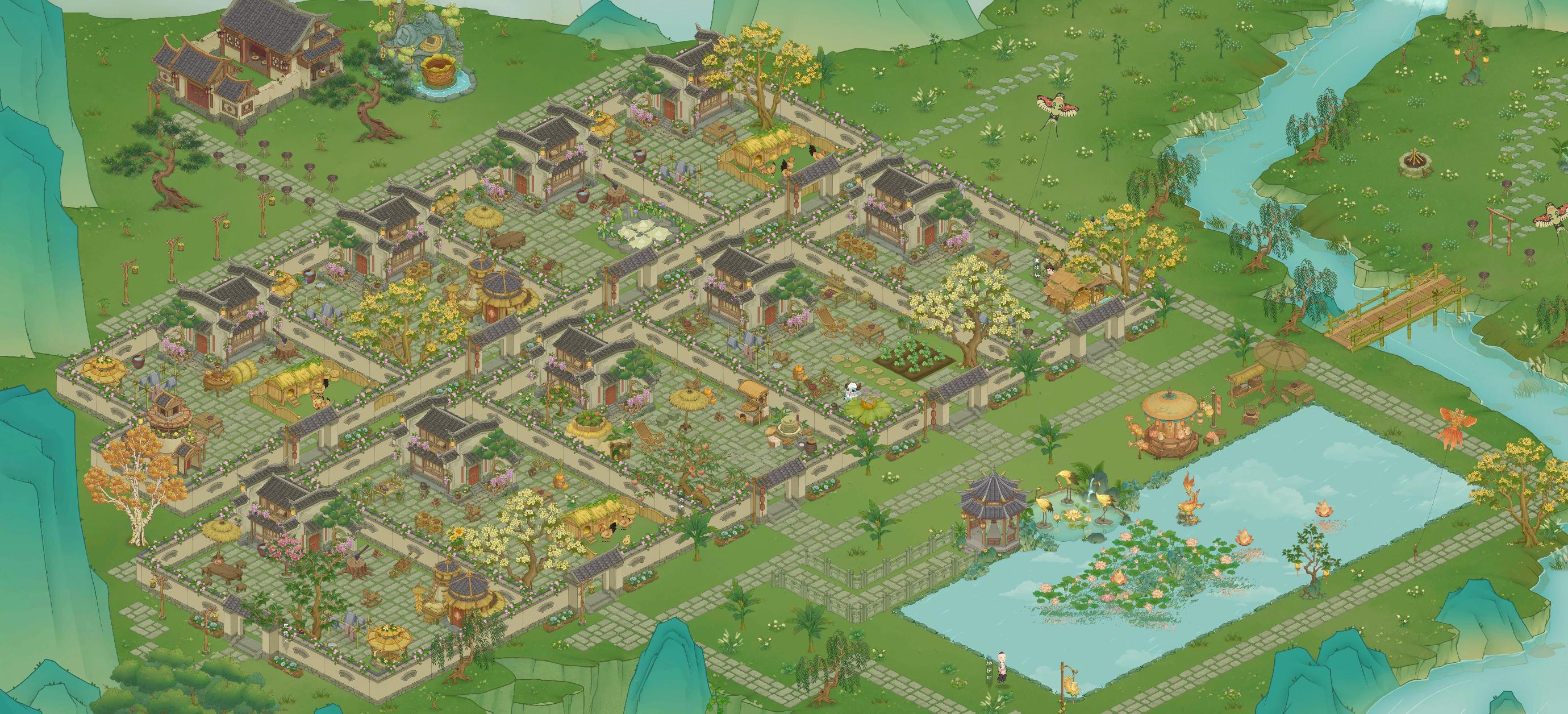 有小伙伴想要布局图,就发一下现在的版本。顺便把之前两次的演变也发了,可以对比看下主要是调整的是:1.左边树的位置,把主次和遮挡关系优化了下2.放了这次新加的风筝3.搭了小鹿灯为中心的小景,那个水井(皮肤)的位置后面还要改,现在有点凑数的感觉这块地方好看是真的好看,我觉得是三个层次的分割和三个由大到小的圈的路线做的比较好,其他都是次要的。大家如果想模仿的话,周边的小景可以自