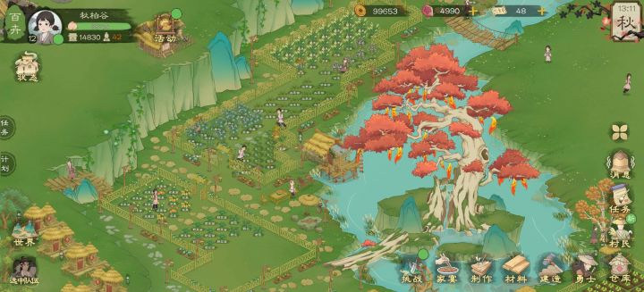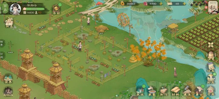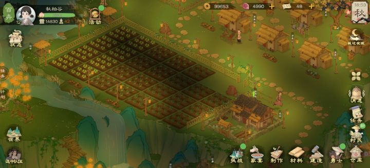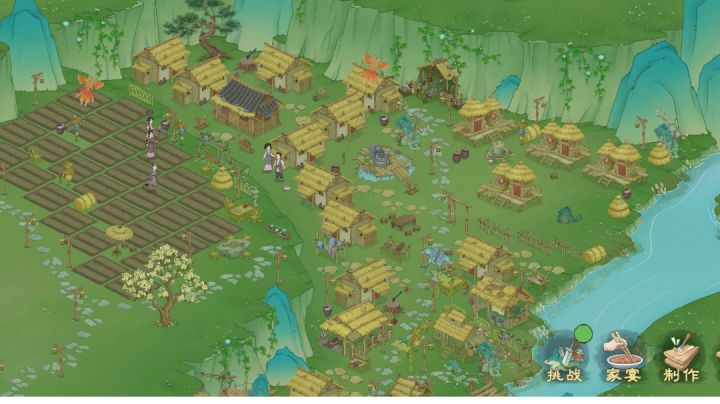 真的好喜欢给植物和田围栅栏的感觉,但是房子还是大家住在一起的感觉好,还有集市旁边那里窄窄的有种悬崖的感觉,在这里坐着围着篝火聊天不要太舒服,还在城门口做了一个接待用的茶楼加棋牌室哈哈哈,期待正式版(✧◡✧)#桃源记2 #桃源记2布景