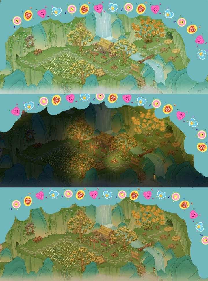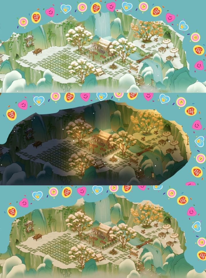 图1:客人来了,当然要住在整个桃源环境最好的地方。图2:桃源里的养猪大户也是有钱啦,住上了大房子,院子里还有一个超大池塘。图3:桃源里有一个山谷,听说互相喜欢的双方去里面祈愿姻缘十分灵验哦!图4:陵陵宝住在了小岛上。图5:农民伯伯和工人们忙碌了一天后可以在去夜市的路上吃上小摊了,味道一绝!