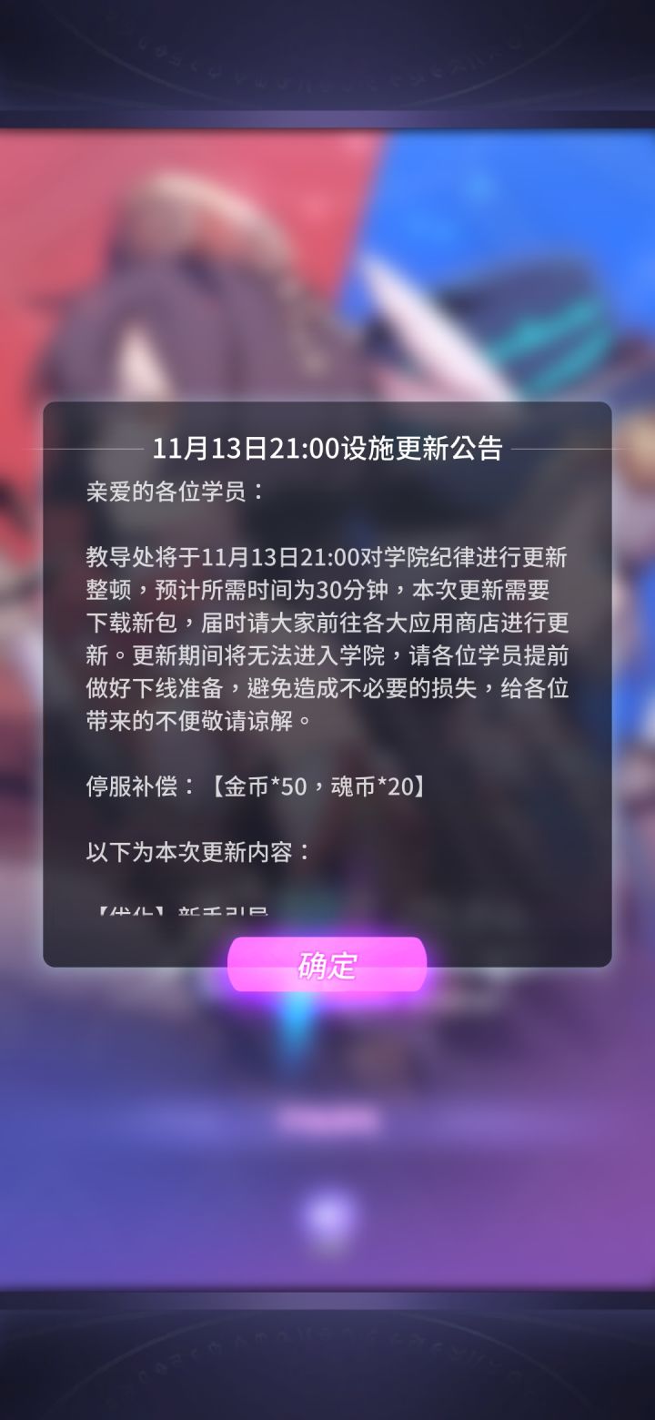 各位学员们大家好!欢迎更新《天神学院》!希望大家都能在学院中获得最好的游戏体验,如果大家在游戏过程中遇到任何问题可以截图并发布至本帖中进行反馈,我们将一一收集并尽快处理BUG反馈格式如下:手机型号:系统版本:下载渠道:具体问题:游戏id:(点击左上角昵称部分查看)问题发生时间:截图:感谢大家对《天神学院》的支持与喜爱!我们将持续对游戏做出更多优化与改进!