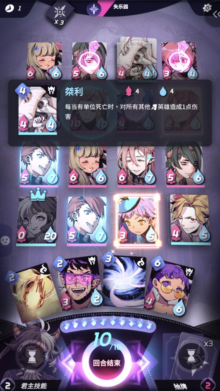 初次写攻略,描述有不准确的地方,请多谅解。下面是我的id一、失乐园阵营特点:有强大的回血能力,清场能力以及控制能力,另快攻头痛的阵营之一。因为失乐园不擅长快攻,这里仅介绍慢速园对敌方法。1、如果你是快攻,尽量不要让对方君主缩入墙角,否则加上技能,可能你就只有一个怪能攻击到对方君主,拖到后期很可能一个855直接奶满。同时堵路尽量用3血以上的怪,不然容易被等价交换清掉。2、如果你是慢速,合理