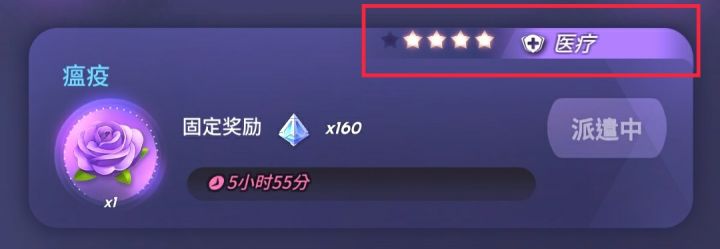 派遣派遣高星任务不要随便派人,不然会没有额外奖励拿右上角这里显示任务稀有度与专精类型,派遣对应专精角色即可增加额外奖励获得概率四星与五星任务派遣角色会有专精等级区分四星任务蓝色专精10%概率,金色专精25%概率,上满四个对应金色专精可以达到100%概率五星任务蓝色专精10%概率,金色专精20%概率,上满五个对应金色专精可以达到100%概率ps.游戏目前没有实装概率机制,只要所有派遣角色