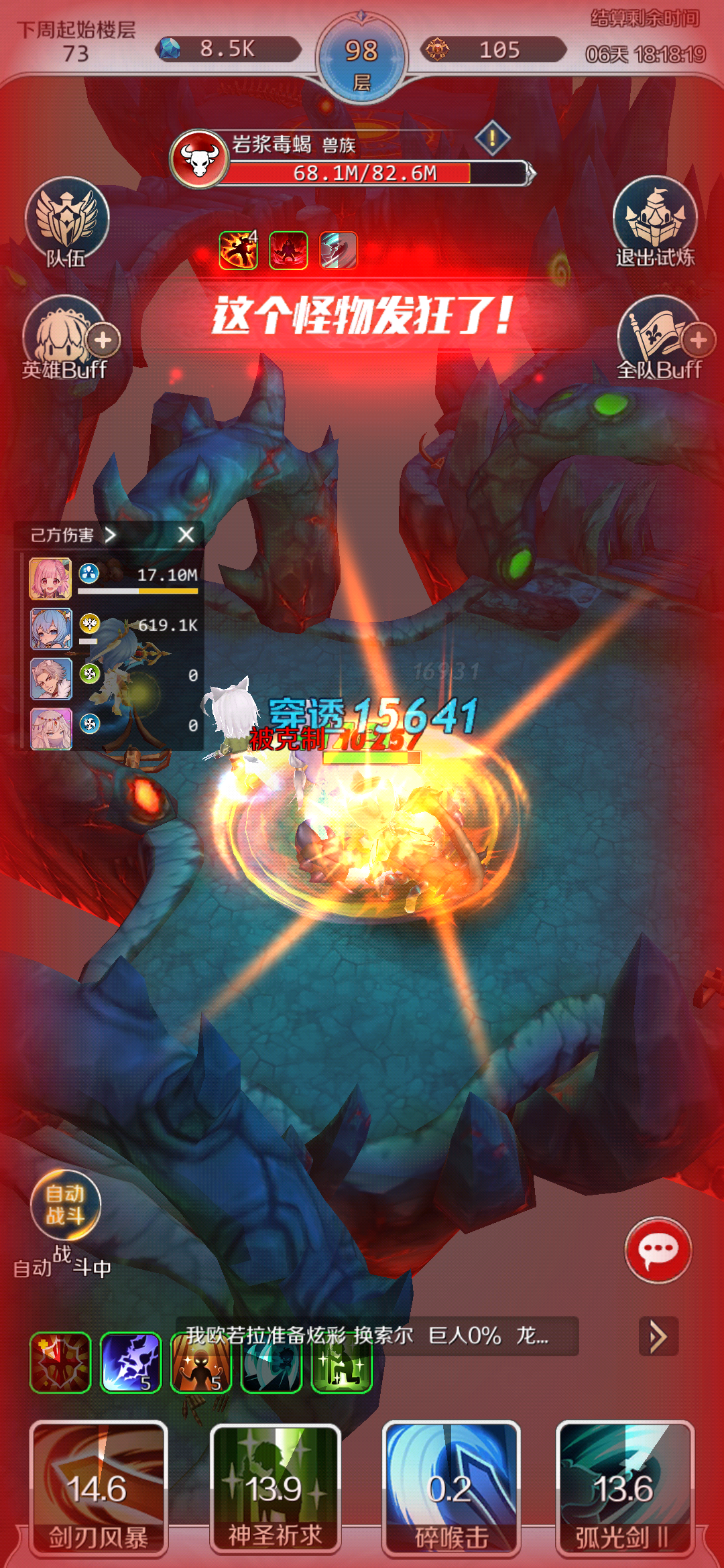 作为一个放置类游戏,挑战过程一旦切到后台运行就直接不进行了!刷副本也是,试炼塔也是,狗粮路也是!那还叫啥放置游戏??我们不就是想茶余饭后点一点让他在后台该打啥打啥,该升级升级么??谁有空天天盯着这玩意??这种机制太坑了!!