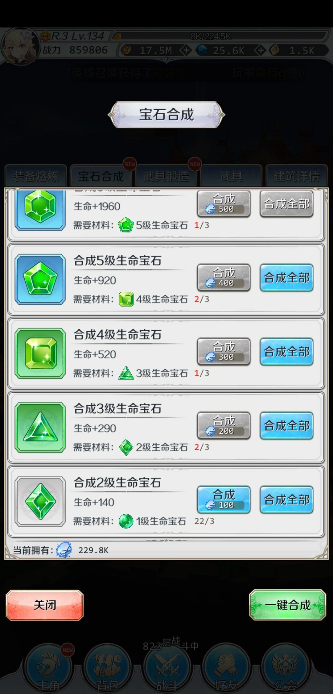 关于宝石合成被吞的问题之前一直听说宝石合成有bug,个人一直没怎么注意,但是今天合成时确实出现了问题。这个图里我一级生命石为22个,然后我点了一次合成可以看到我一下子扣了13个一级生命石,但是只合成了1个二级生命石,重新登录后,被吞的还是那样。后来我有试了一下,发现我数目不到20的合成都没有问题,是否是以20为界限,大于就出问题小于就没有问题?我现在没法确定,感兴趣的可以试一下。关于宝石合成