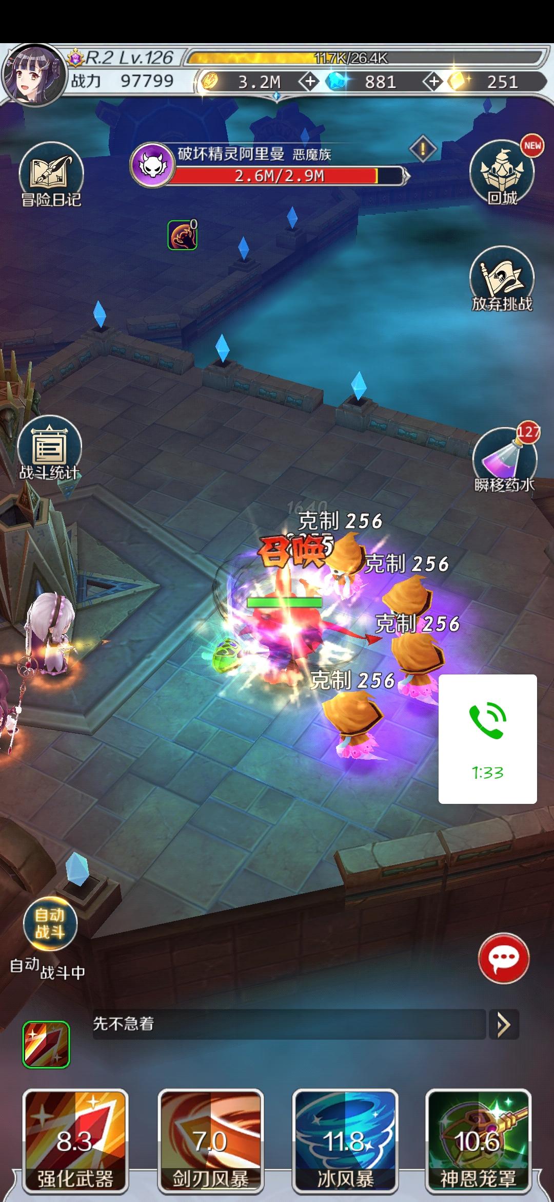 不知道是不是只有我有这个问题。1,点开瞬移药水,主楼层点过自动战斗后,关上自动战斗,打掉当前楼层boss,进入下一楼层时退出主楼层,再进去主楼层,进入下一楼层boss战(并没有更换技能哦)自动战斗是暗的,但仍然会自动释放技能,只有点开自动战斗再关上才不会自动释放技能。2,也是点开瞬移药水,打掉当前楼层,退出,再进主楼层,一直卡在进入动画界面,但背景能看到释放技能战斗的一闪一闪的亮光,应该正在战斗