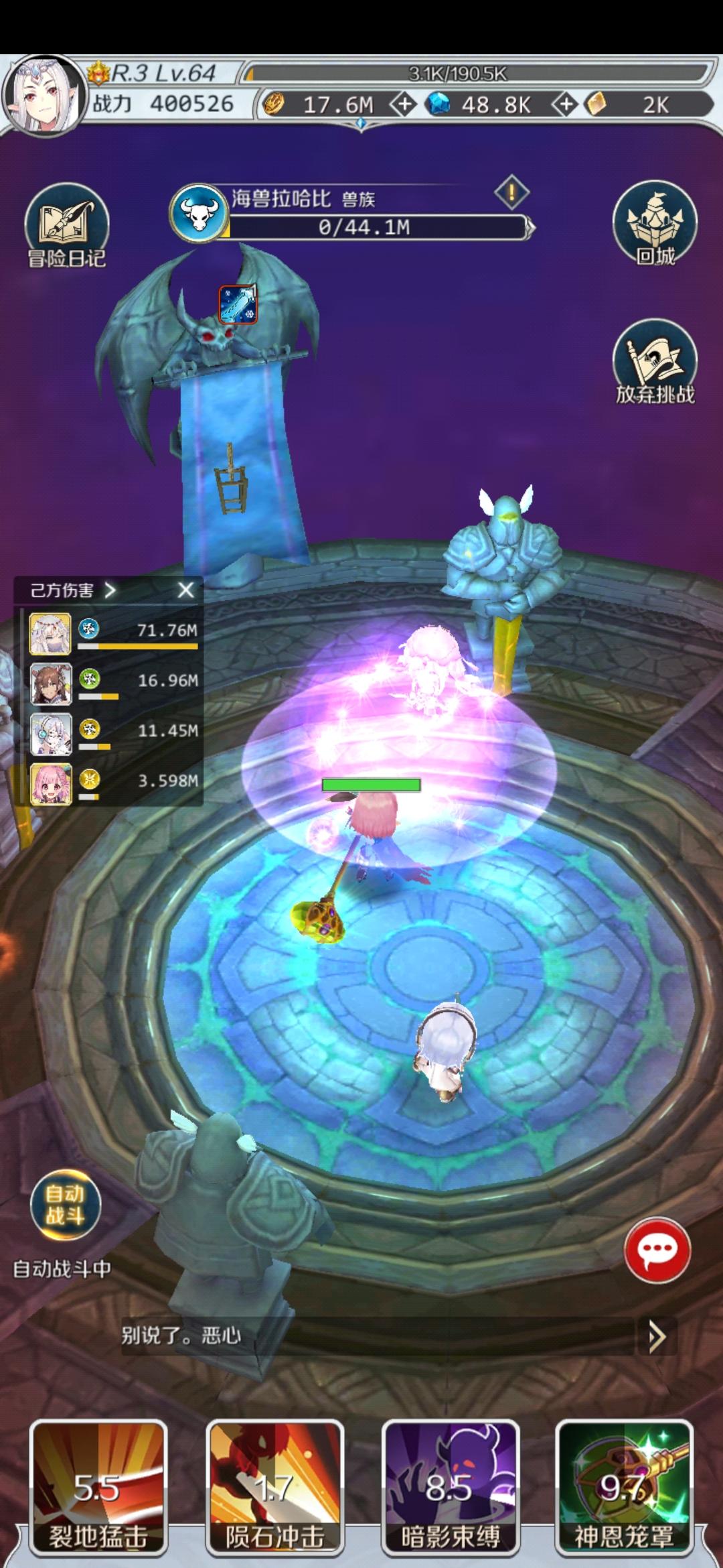进度排名奖励。已领取的弄最下面去吧,每次都要一直拖到最新排名,20000层???扫荡奖励领取。秘境已经改了顺便把怪兽祭也优化下酒馆英雄位置和图书馆技能位置。上阵的直接拖动更方便点。好吧是我懒了一键熔炼。宝石合成和武器锻造都有了,装备熔炼也弄出来把。↑公会直接加入选项。哪有那么多时间一天在线等人申请再同意。设定战力够了申请直接加入无需同意酒馆、英雄召唤、恒金封印。离太近经常误点好烦。其它