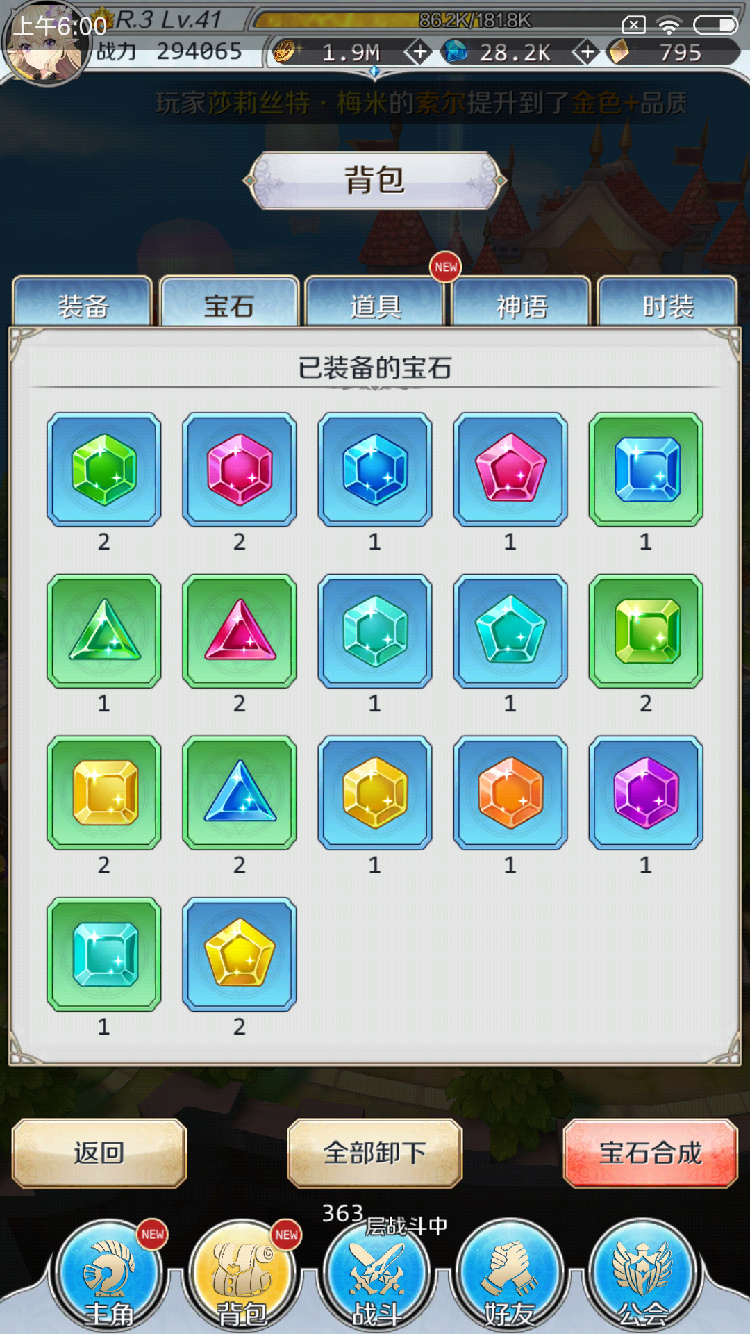 明明合成了7级宝石,为什么角色那里,和背包里都看不到??是bug吗??希望解答!!