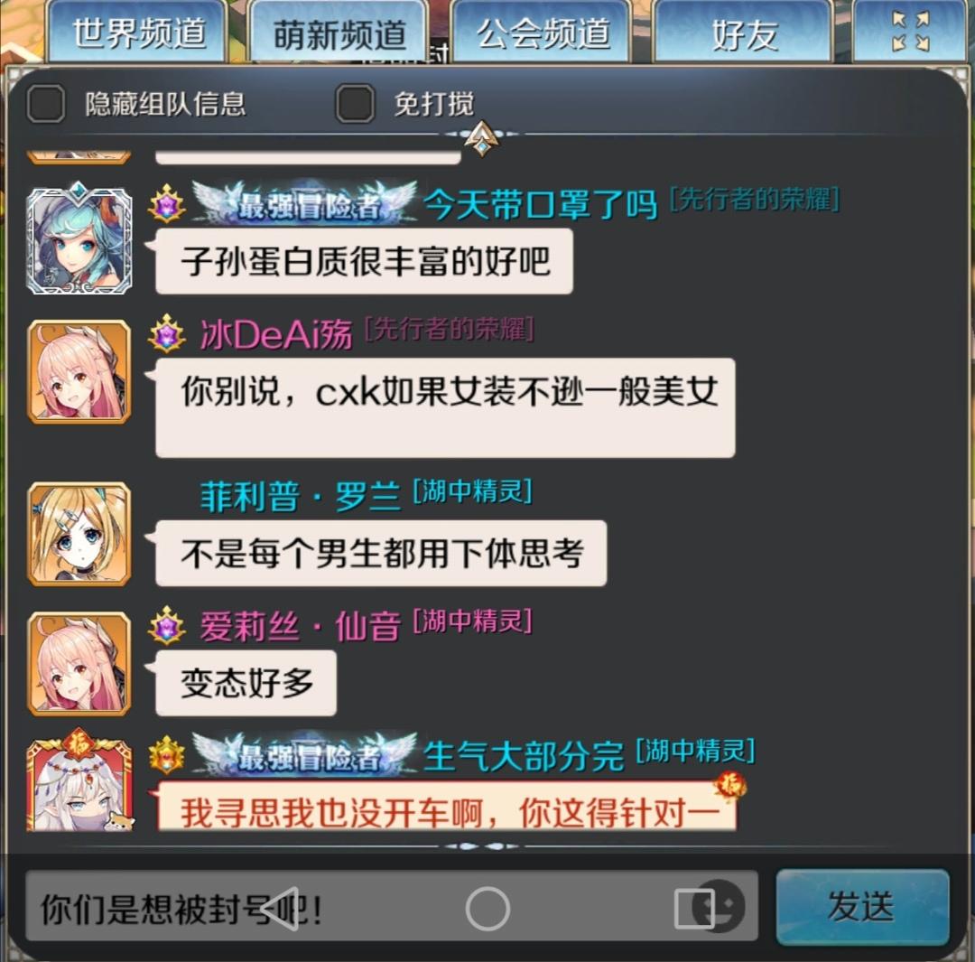 玩个游戏有点看不过去了!没有加QQ群来这里发个帖子,希望菜菜能看到,前面还有更加离谱的没有截图,大概说的是guanchang之类的真恶心,这是我后面随便截图到底你们看看。