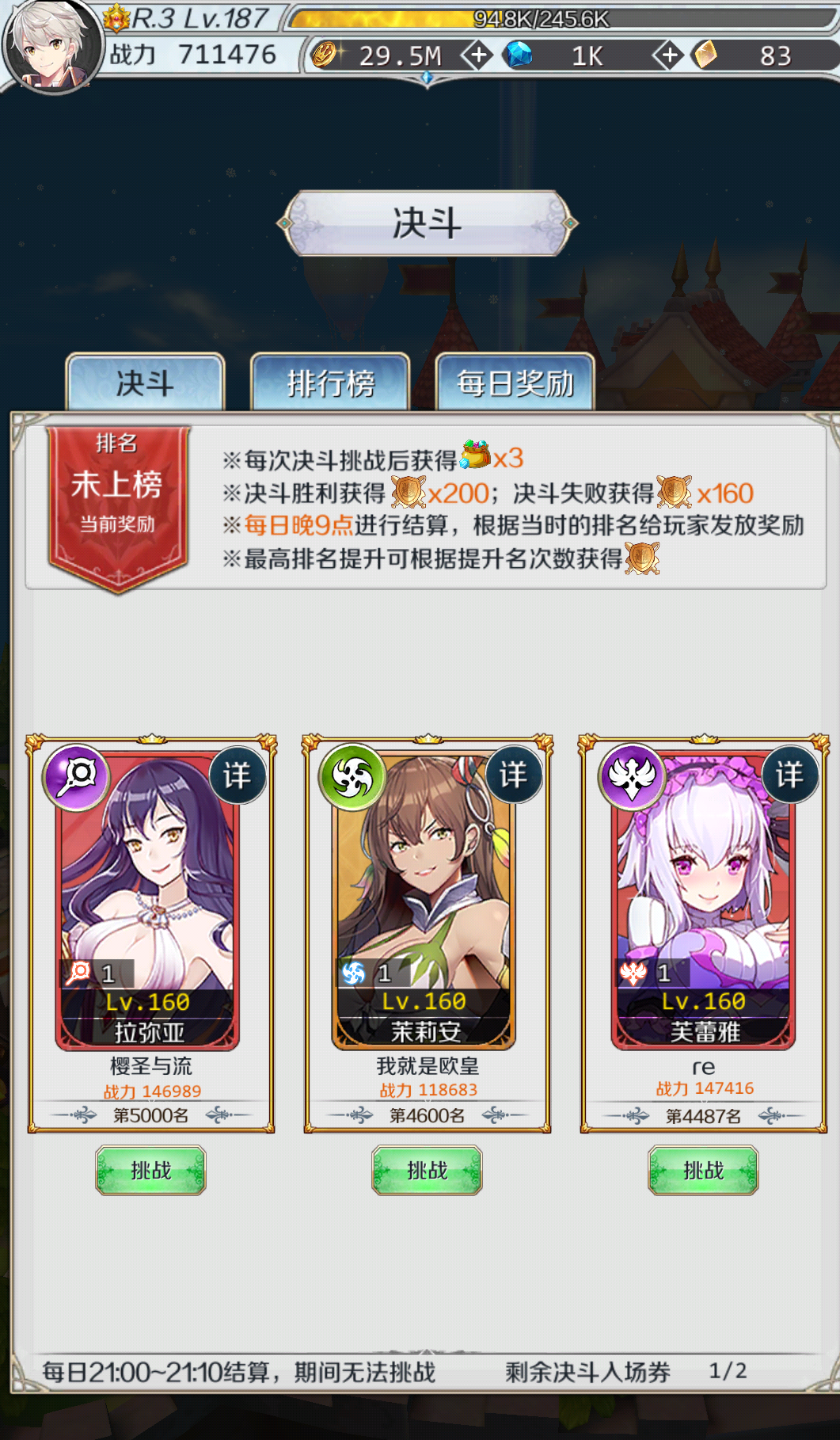 今天这是咋了,先是账号无缘无故被封,还好解决的挺快,然后又来个bug?排名突然没了,让我71万去和十几万的打,虽然这决斗资源比较少,但是还是很郁闷啊!!