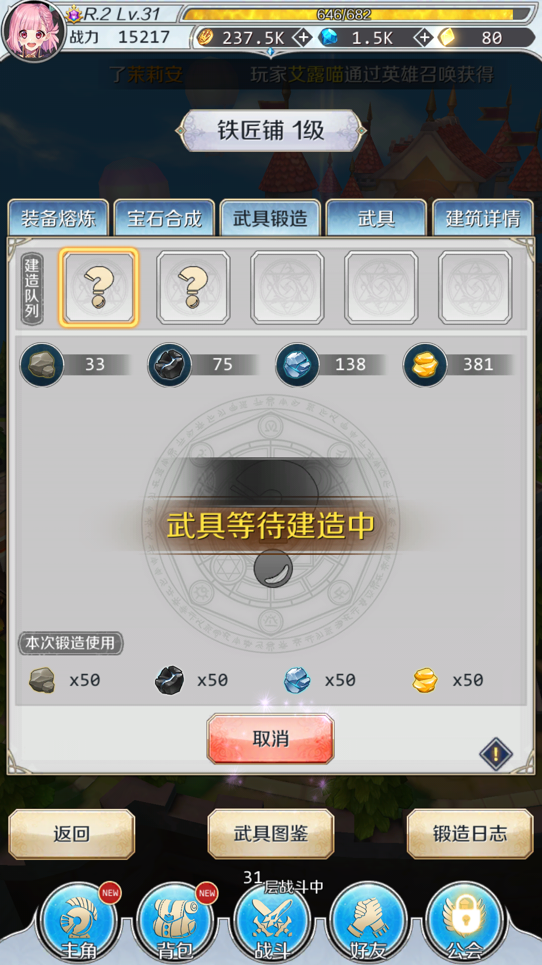 武器锻造是不是有BUG,不能领取不能取消