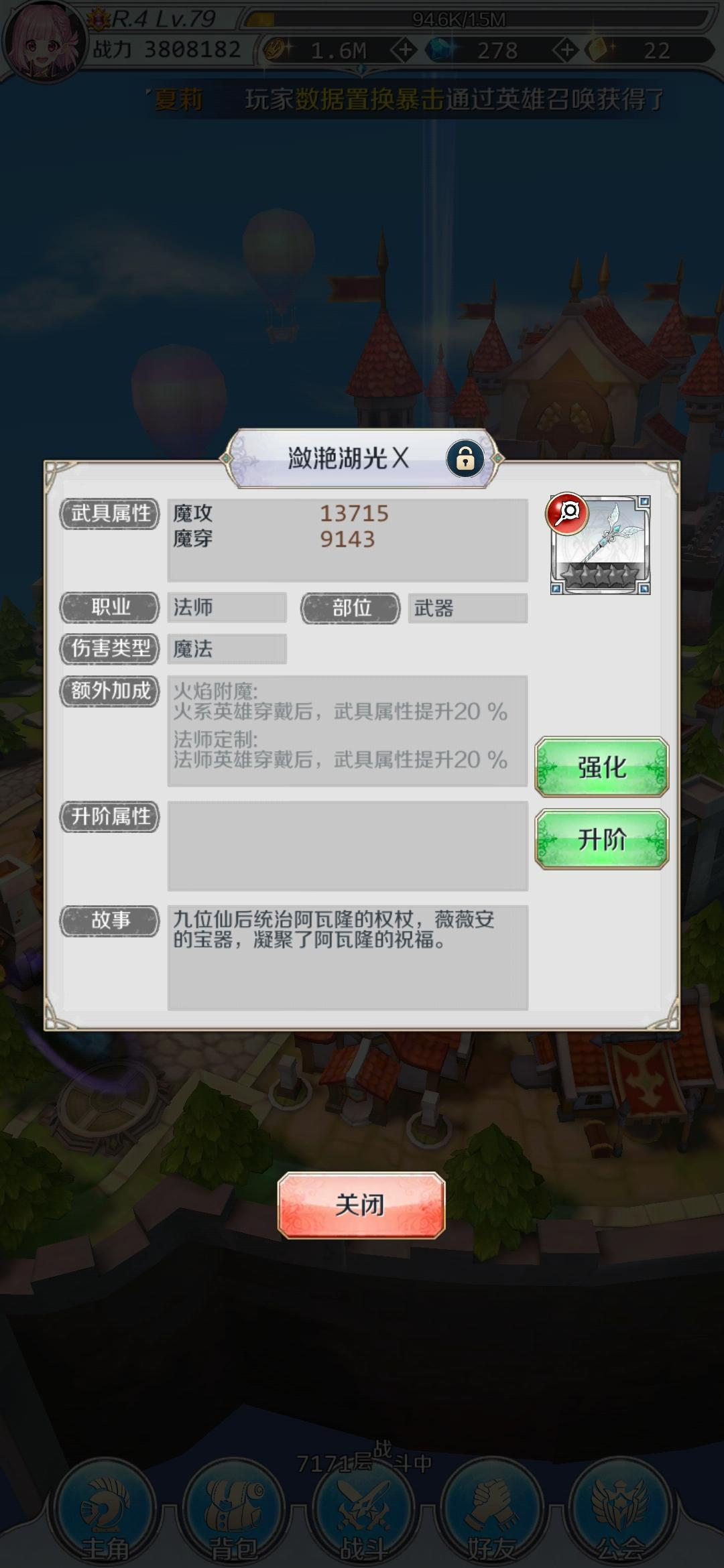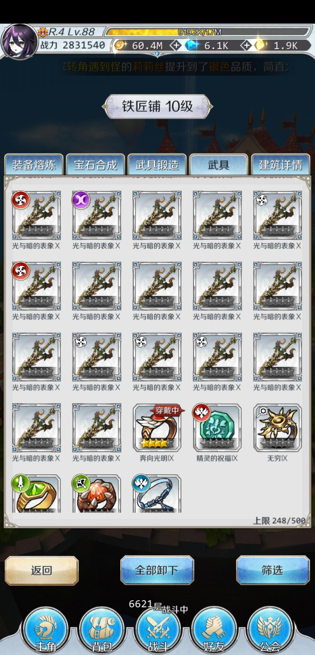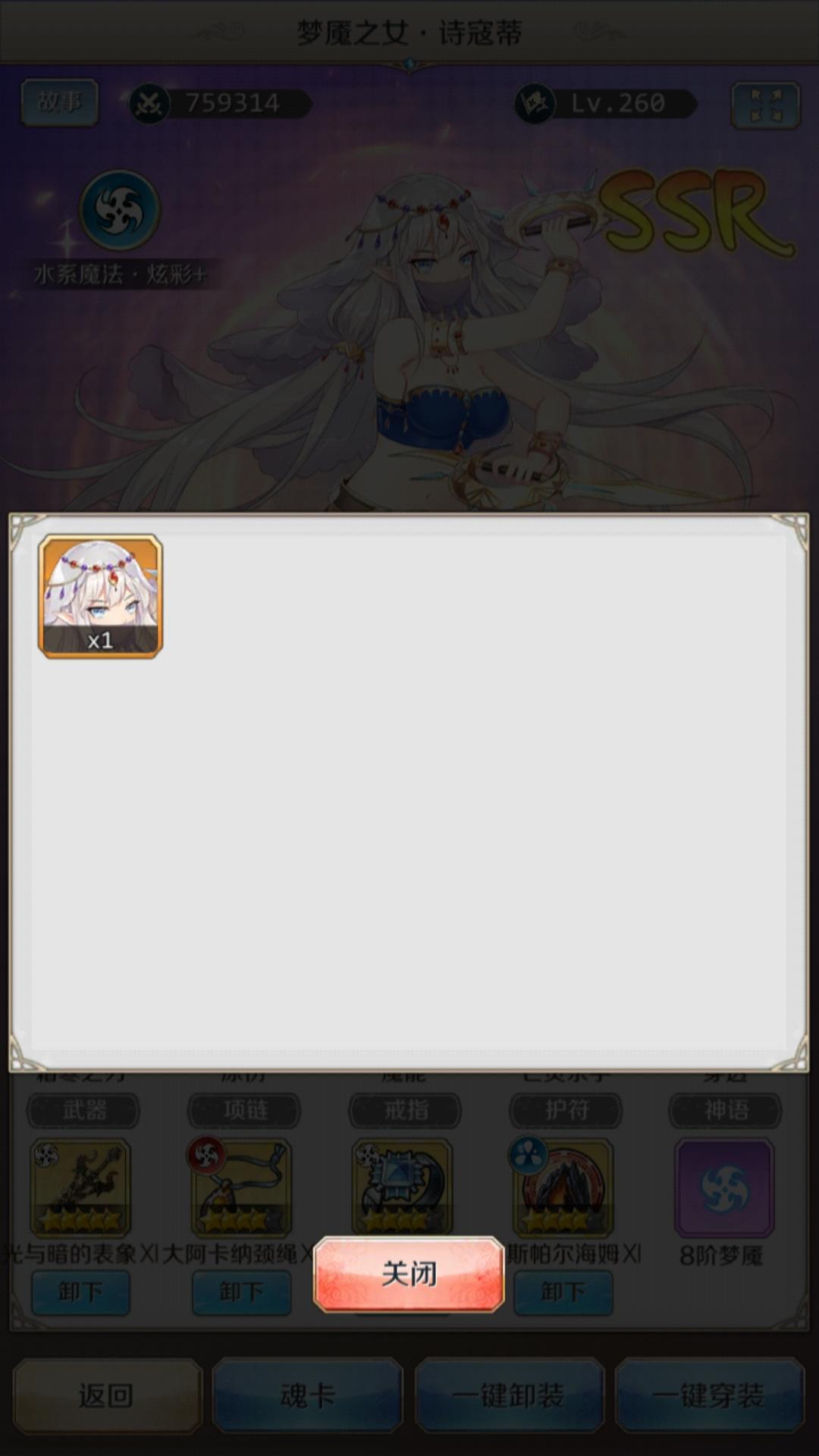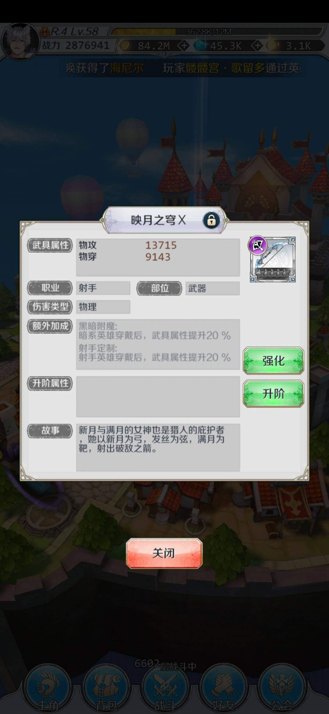 这样一套阵容爬上了6600,打完之后感觉缺伤害这个问题很影响爬楼的难度,那么是不是应该拉满怪物祭,去提升技能等级,靠这个微小的提升来减少爬楼难度呢?技能等级拉满,靠技能等级加的属性也能增加一部分主角攻击穿透,对我这样的芙蕾雅体系很重要,主角穿透单靠助战远远不够用,神龙加石头才勉强够。或许用更多的怪物祭去提升技能和神器,推图时会更简单一些。