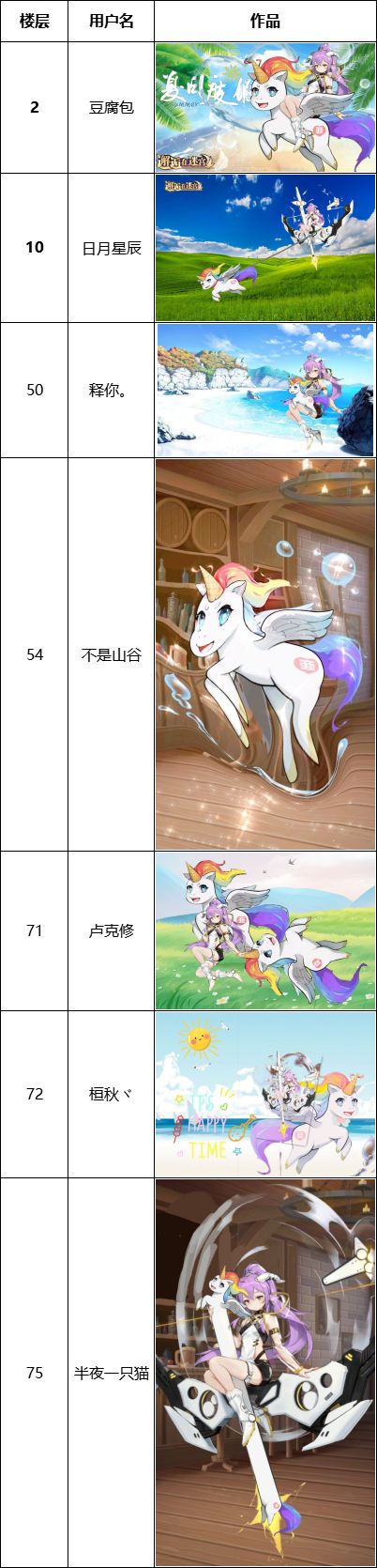 感谢冒险者们的积极参与~下面先公布【芝麻奖】获奖名单:不愧是邂逅的冒险者,人才辈出!芝麻奖归你们莫属!请以上获奖冒险者在7个工作日内联系QQ客服艾曼拉(游戏内万事屋一键加群私聊即可),登记收货地址,逾期作废。*参与奖会在3个工作日内发放,请注意在游戏内邮箱中查收。————————————————————夏天了!大海呢?沙滩呢?泳装呢?希尔芙和莉莉丝都有泳装,我们七月上线的艾拉·神和夏