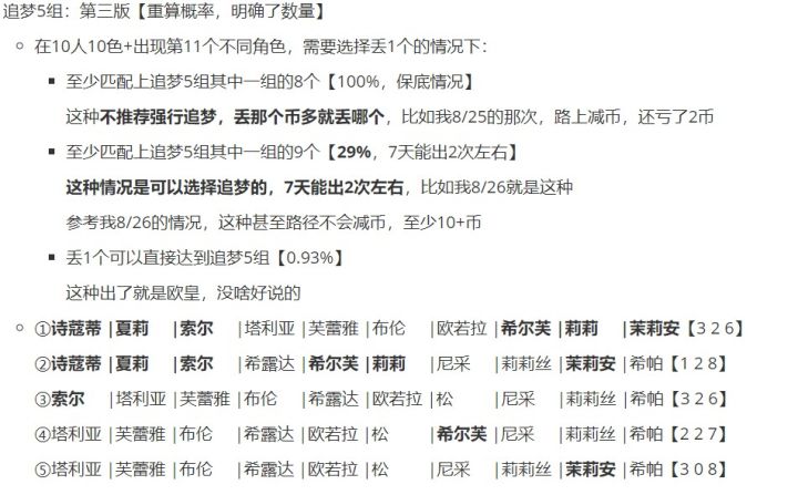 23/12/19更新:受苟佬玩偶工坊表启发,新增13币追梦表格,链接如下,使用wps打开,手机电脑均可使用链接: 【终于会视频和图片一起发了】【发现可以电脑编辑,于是又改了一下】1.前言:昨天出了周边店,这个加分组合人脑研究了3h,结果就整出来一个12币组合,不甘心,于是就写代码遍历,让cpu去算了2.先说结论:①十人十色情况下最高13币,共有5种组合可以达到(