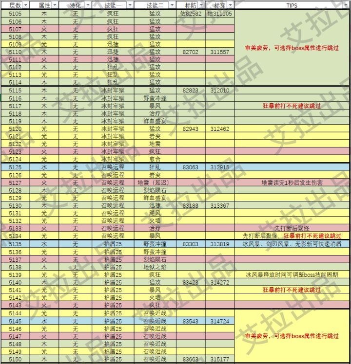 零氪大佬系列实用贴:R4boss属性技能主要数值表1(5105-6000,文更新6000后帖子链接)