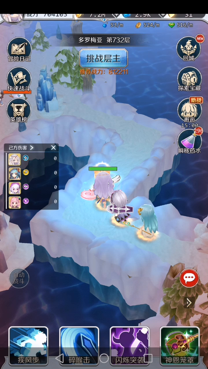 配置看图核心芙蕾雅,暗系对所以其它属性都有增伤,再加两个暗系杂毛凑齐元素max,三人职业不能超过2种,下面放四个杂鱼凑齐6人同职业的30%加伤就可以了。技能配置如图操作就是芙蕾雅给上buff后开神圣祈求然后赤炎爆发,前两个技能可以随便换,补伤害,当然走物伤流也可以,思路就是一套秒(商店改版限购后,新手合不出八九级攻击宝石想一套秒可能不现实了,但目前主要靠主角打伤害,这个配阵容思路应该是没有错
