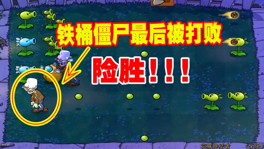 植物大战僵尸:铁桶僵尸最后一秒才被打败,差点进入房间,险胜!