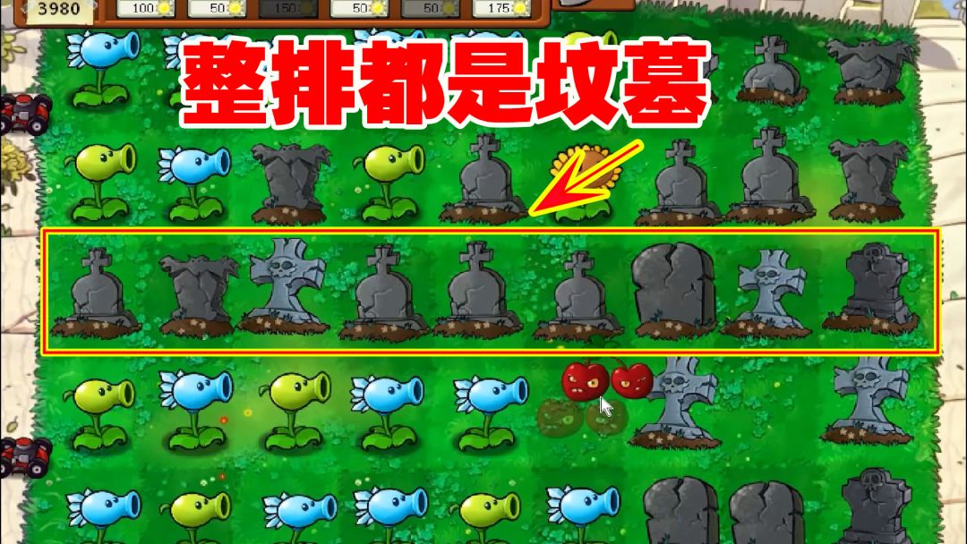 植物大战僵尸:整排全是坟墓,精心计算卡着点放车,顺利通关