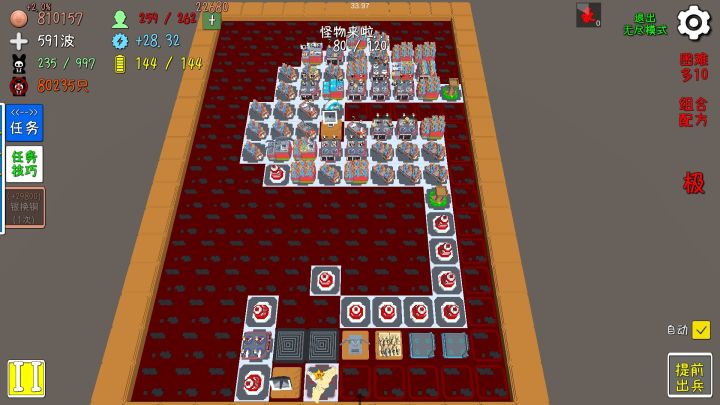 发图再说话可以看看这是一般的时候,当出了霸体怪之后,把右上角的一塔基拆了,之后将另一条路打开,堵上原路当所有霸体怪或者大部分霸体怪进入左边大空间之后,变为图一以后所有怪会进入左下角一个万毒慢慢收割,如果再来一波霸体则把怪带的2块的地方封起来然后重复第一步