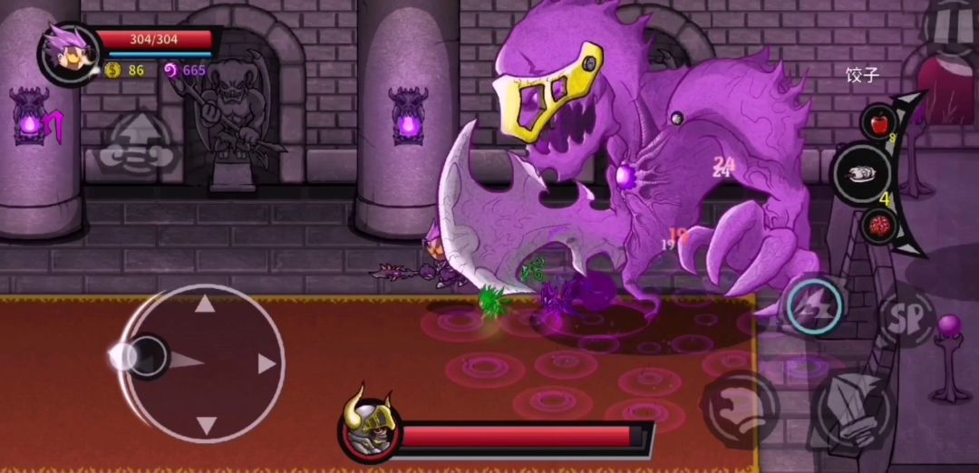 首先,先来讲绿皮龙,这个boss算是游戏中玩家第一个遇见的boos,打法也很简单,这个boss只会一个技能:冲撞。当boss后退试图和玩家拉开距离时,就是它要放技能了,这个时候不要跟他在同一直线,要等龙冲完之后再动手,因为它倒地时也有一段伤害,会有击飞,如果被击飞了,会损失很多输出的时间。另外,在绿皮龙血量低于一定程度时,可以通过丢一个鸡腿来争取输出时间。然后,再说史莱姆王,这个boss很多人第