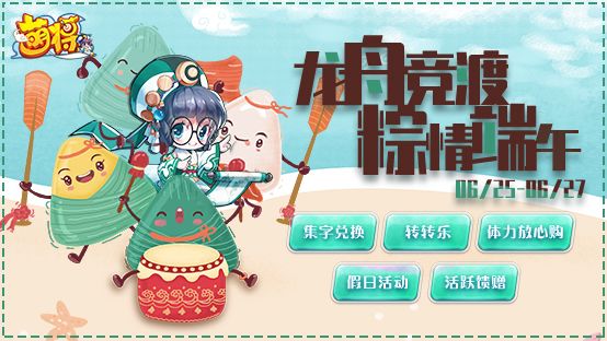 各位小主们好:龙舟竞渡,粽情端午!《萌将风云》为各位小主带来福利满满的端午节精彩活动!“集字兑换”、“转转乐”、“体力放心购”、“假日登录”、“活跃馈赠”等再度来袭。下面是端午活动的精彩内容预告:【活动一】“粽情端午”活动活动时间:6月25日~6月27日活动内容:活动期间,通过副本获得掉落的端午文字来兑换心仪的道具。活动范围:全服【活动二】“限时掉落 ”活动活动时间:6月25日~