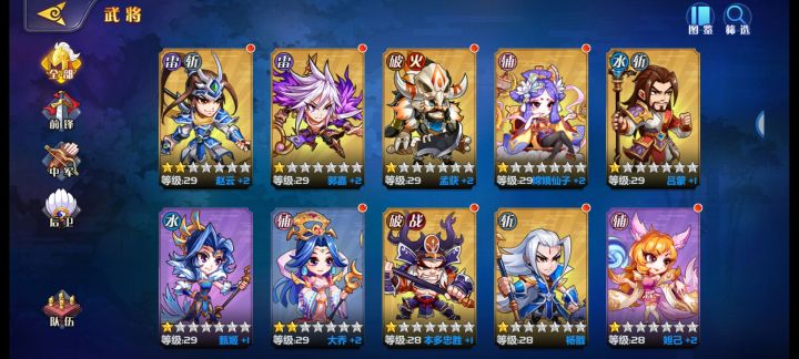大家好,我是175区的勇闯寡妇村。相信很多人都认识我,之前不认识也没关系,现在就认识了。之所以写这份攻略,也是因为最近的贴吧里,很少有负责的吧主会去写一份完整并符合现版本的攻略,而萌新们因为前期不会玩浪费了大量的资源导致弃坑。当然狗哥的攻略也可以看看,毕竟是元老级别的人物。废话不多说,直接上正题。(结尾有惊喜)一、游戏类型萌将风云属性横版的卡牌游戏,不同于站2排的6卡游戏,更侧重5个将的配合,
