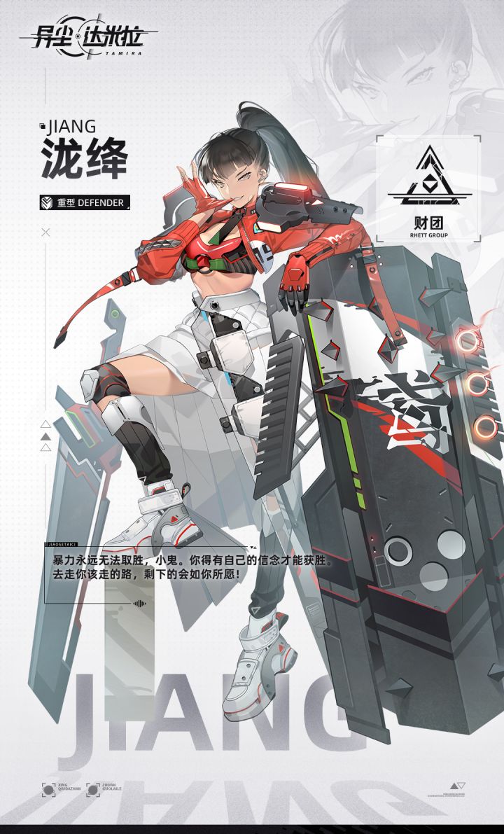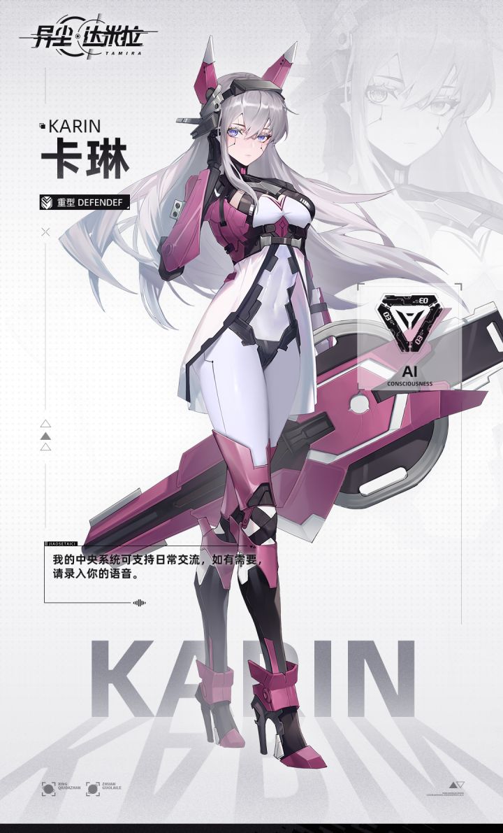 姓名:卡琳职位:AI战士来源地:AI生产地所属阵营:瑞德财团爱好:户外训练愿望:找回逐渐曾经的记忆留言:人工智能佣兵卡琳确认启动,请根据您的用户习惯,对相关初启设置进行调整。关注我们:官方1群:618992924官方2群:555261079官方微信号:e-tamira官方微博:@异尘达米拉