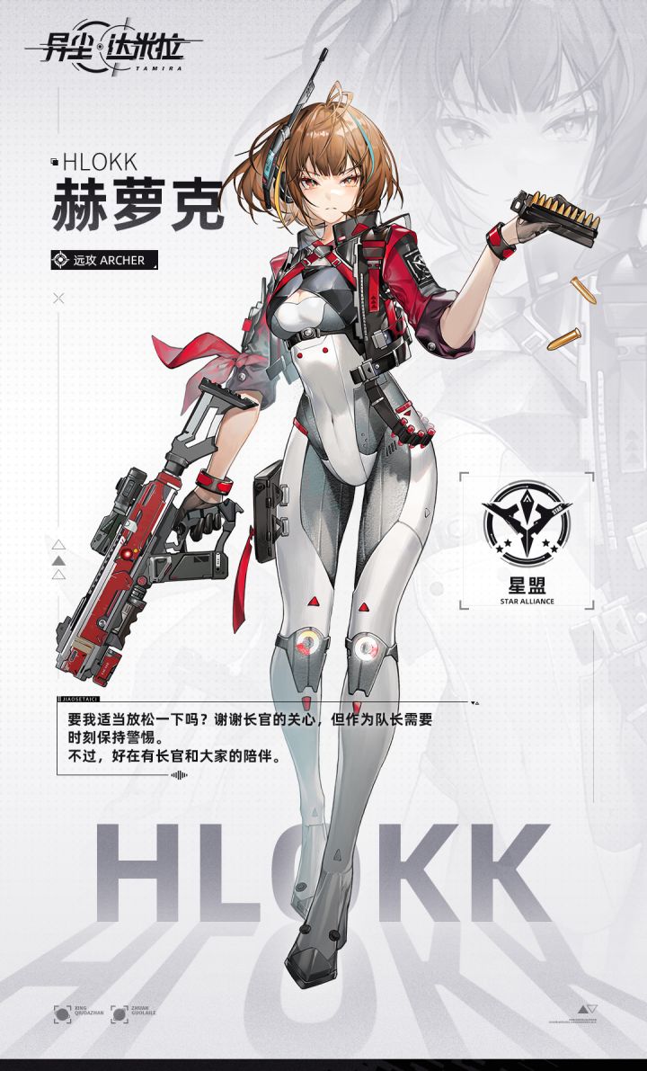 姓名:赫萝克职位:阿图姆号第一梯队队长来源地:火星星盟管辖地-科林斯卫城所属阵营:阿图姆号爱好:训练愿望:保护对自己而言重要的人登舰时的留言:“星际联盟阿图姆号第一梯队队长赫萝克向您报告!长官,既今日起,我就是您的子弹。不要吝啬您的指令,让我穿透敌方的心脏,为您拿下最终的胜利!”关注我们:官方1群:618992924(满)官方2群:555261079官方微信号:e-tamir