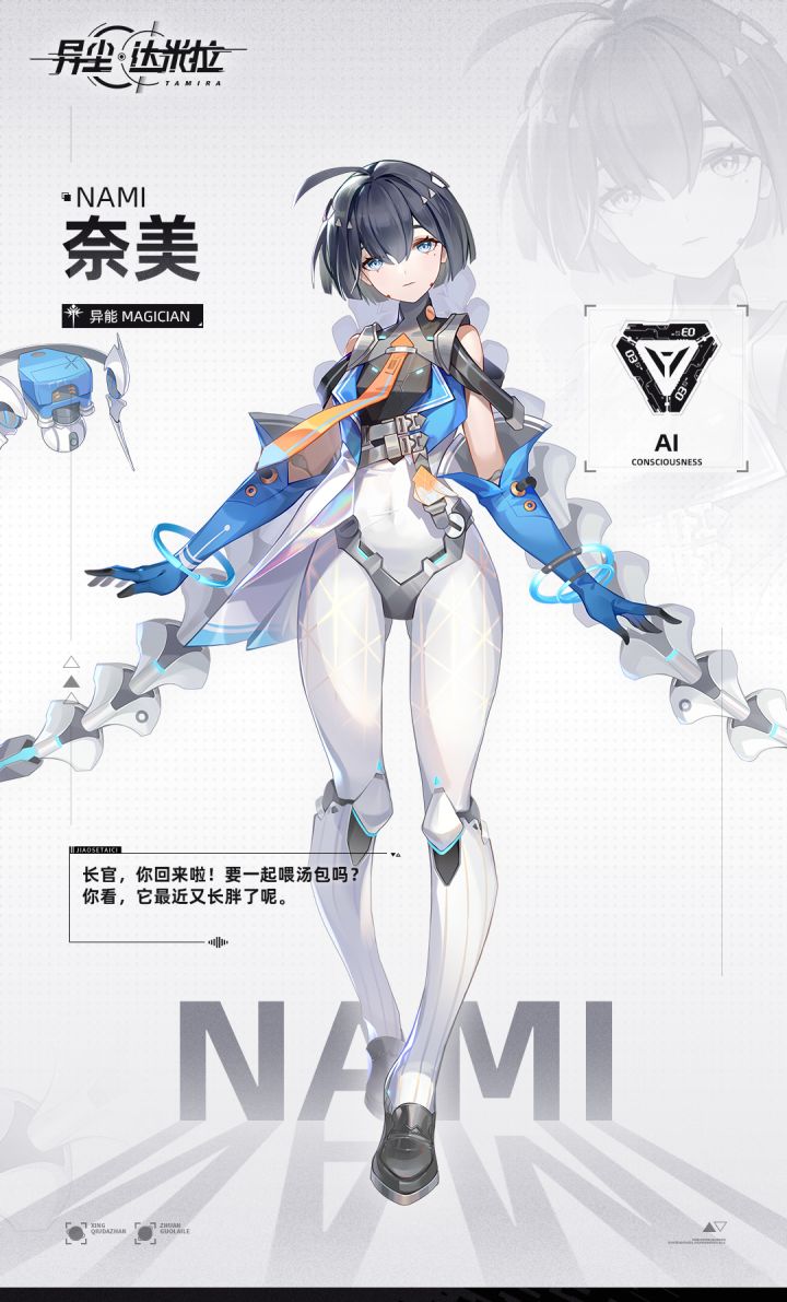 姓名:奈美职位:待销毁的AI来源地:火星财团管辖地-出云城所属阵营:瑞德财团爱好:写日记愿望:重现所有美好回忆留言:我只是一只被囚禁在笼中的小鸟,我的羽翼早已掉落。若想我飞翔,就请帮我展翅吧。关注我们:官方QQ群:585565067官方微信号:e-tamira官方微博:@异尘达米拉