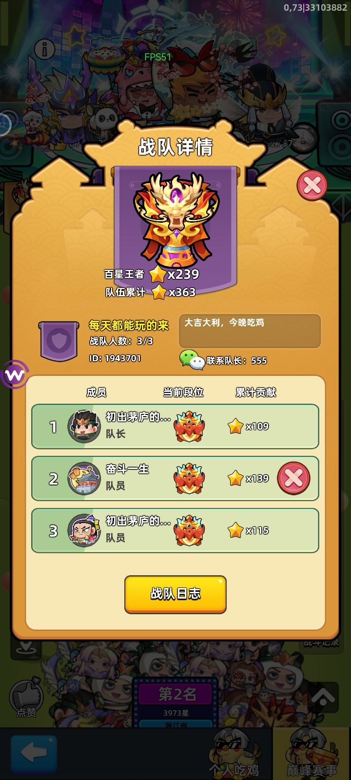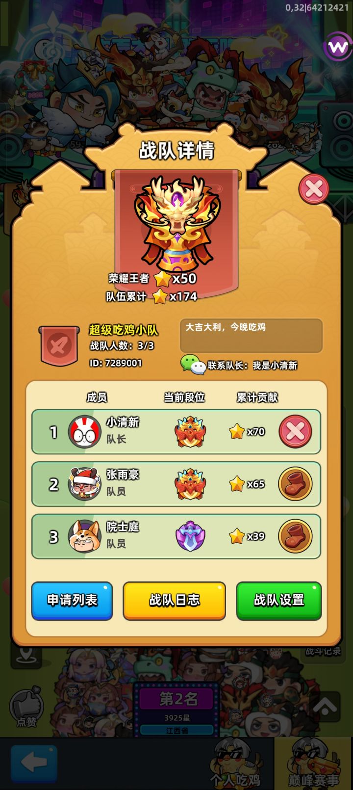 战队缺人 每天打满两场的来 直接搜战队id 7289001 app端
