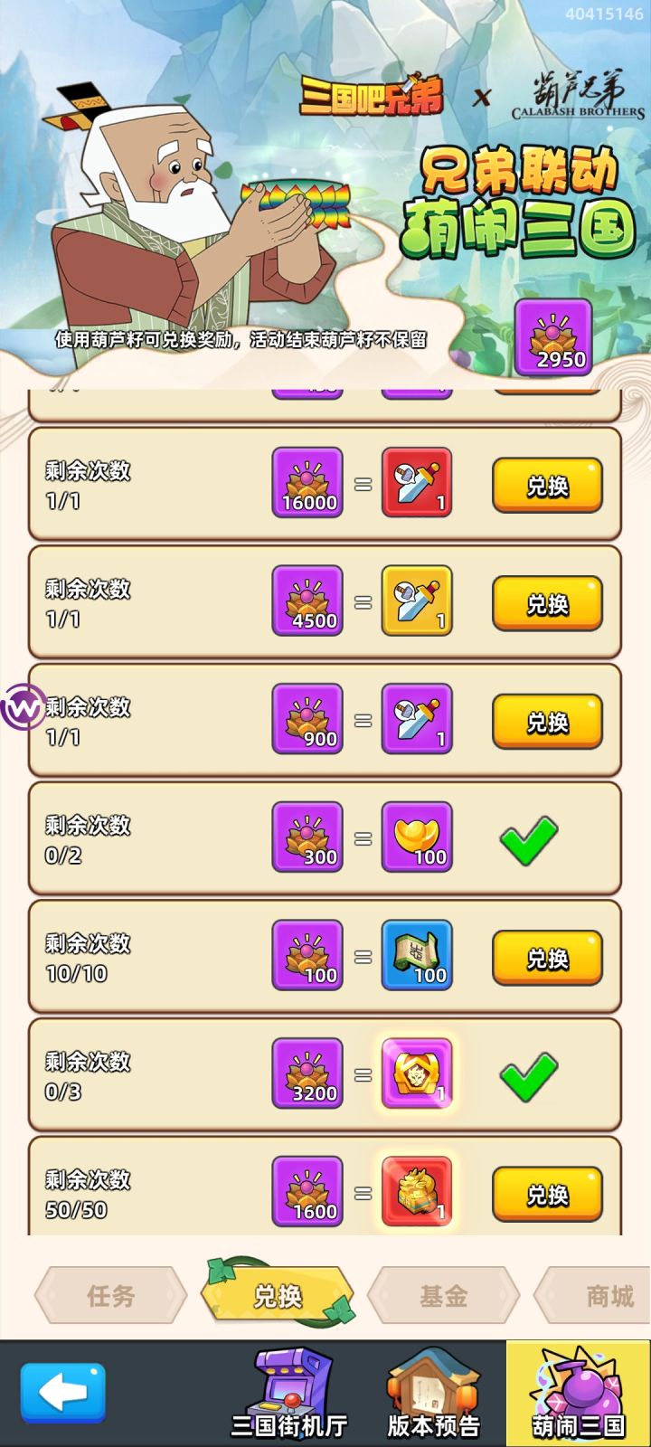 葫创三国活动零氪最佳日常攻略。探险:寻宝礼包元宝购买体力拉满,每天440元宝。广告体力点满。葫芦娃被困山洞逃脱路线和回忆环节请参考其他贴子,答题如果遇到不会的大概率是葫芦娃多的对。商城兑换:幻化丹必换,至尊灵器自选、元宝拉满。其他有什么疑问欢迎大家评论区交流。